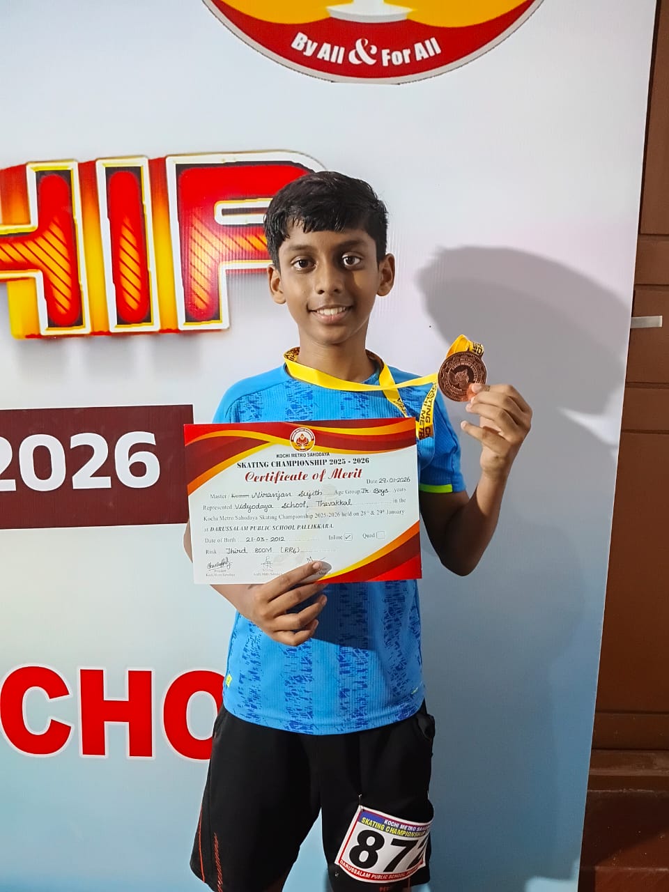54.Neil Sajeev of class 9B won silver medal in 200m race (Senior category-inline) in the Sahodaya Skating Championship held at Darussalam Public School, Pallikkara