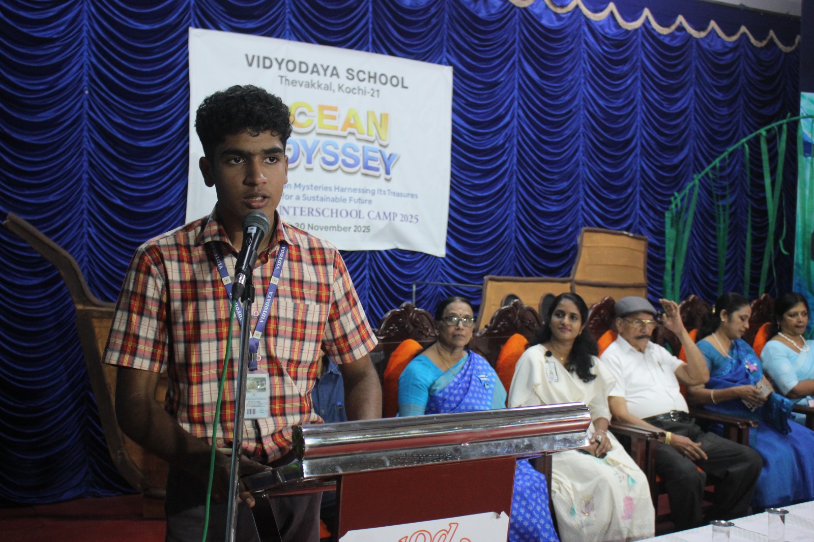 The OCEAN ODYSSEY (Inter-School Camp) was held at Vidyodaya School, Thevakkal. Dr. A. Biju Kumar, Vice Chancellor of Kerala University of Fisheries and Ocean Studies (KUFOS), inaugurated the camp. Dr. Femi Anna Thomas, Assistant Professor and Pioneering Polar Scientist of Aluva UC College, was the special guest. Around 170 students and 20 teachers from various schools in the district participated in the three-day camp. Various activities such as water games, adventure games, creative sessions, quizzes, campfires are being organized in the camp.
