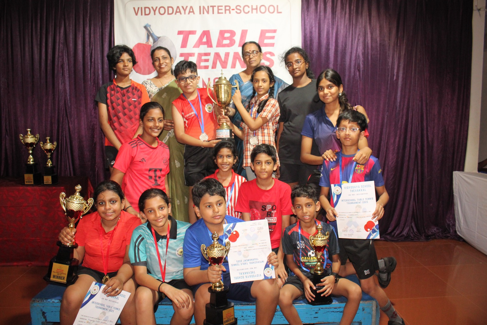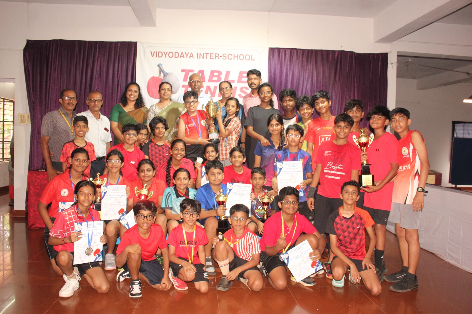 The much-awaited Interschool Table Tennis Tournament was conducted with great excitement and sportsmanship. The event brought together talented players from various schools who competed with determination and skill.Around 10 schools including Vidyodaya participated in three categories.After a series of intense and thrilling matches, Vidyodaya School emerged as the champions, showcasing excellent teamwork and consistency. Rajagiri Seashore CMI School,Vypin put up a spirited performance and secured the position of runners-up.